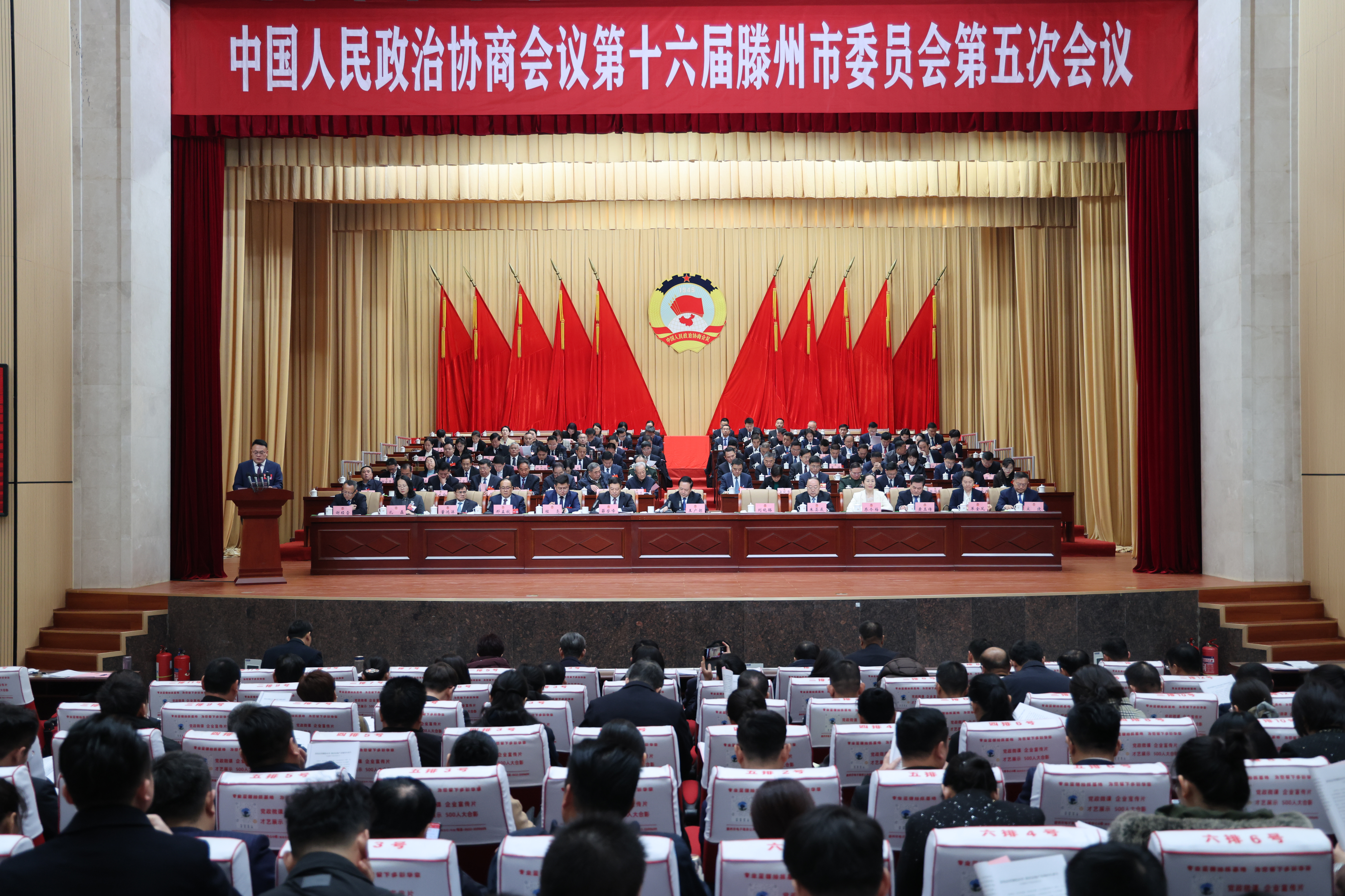 2月3日,市政协十六届五次会议举行大会议政发言。枣庄市委常委、滕州市委书记王广部出席会议并作点评讲话。市政协主席薛登峰主持会议。市领导刘晓璐、朱晏辰、程亮、刘庆东、康凤霞、孔祥东、李晓剑、常涛、张传纲、颜丙磊、张晓翠、宋长远,以及市人大、市政府、市政协领导班子其他成员出席会议。
